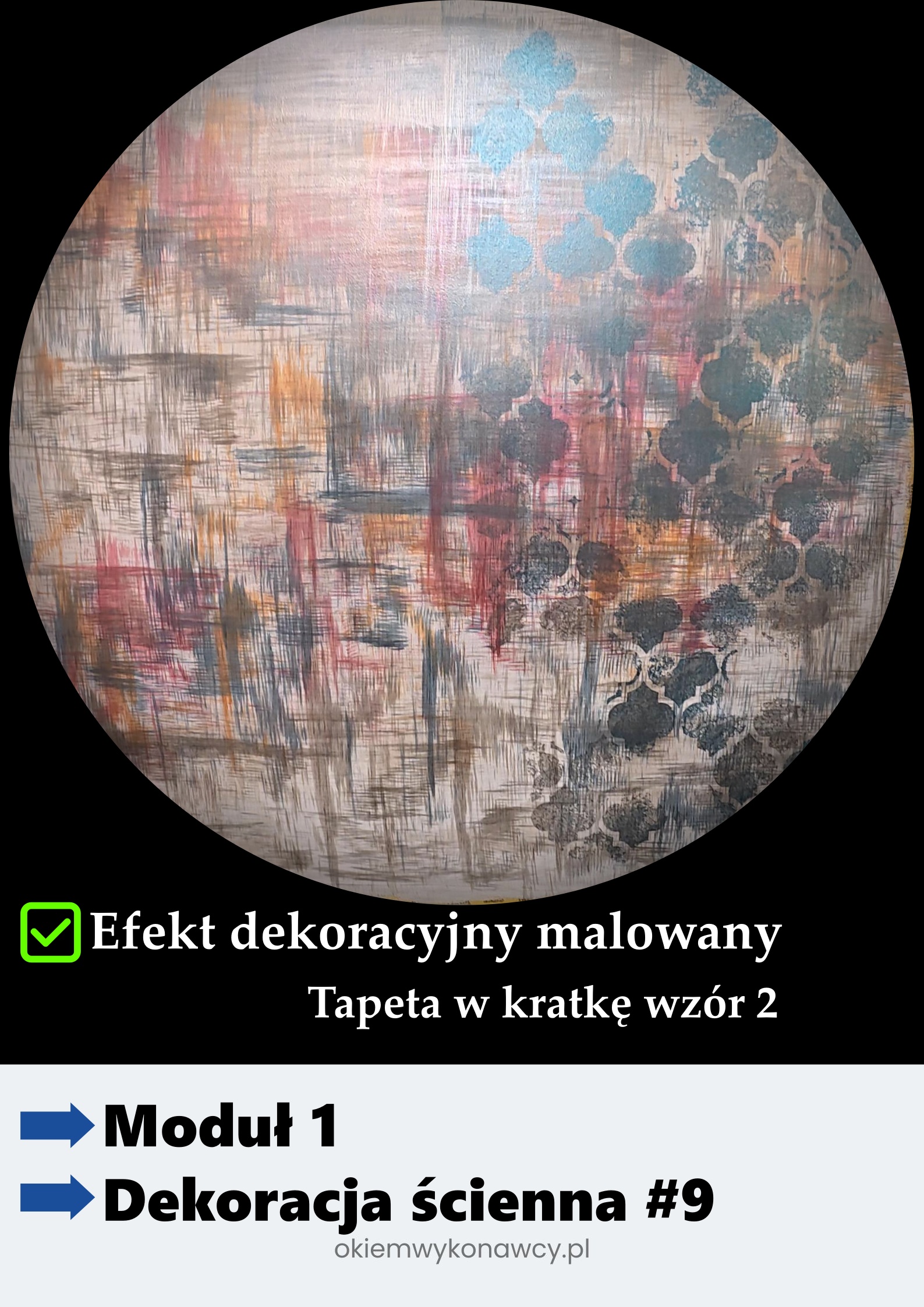 - Lekcja 9. Wykonanie dekoracji „Tapeta w kratkę wzór 2” – od podłoża do efektu końcowego KROK po KROKU ze wszystkimi szczegółami.